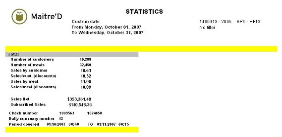 The second part, on a last page, prints the total for the whole restaurant, and adds the following information: