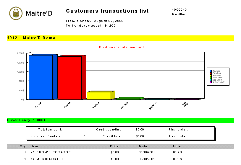 The following is a sample of the Customers Transactions report: