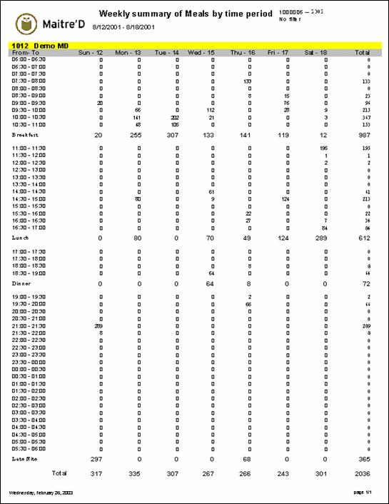 Weekly summary of Meals by Time Period