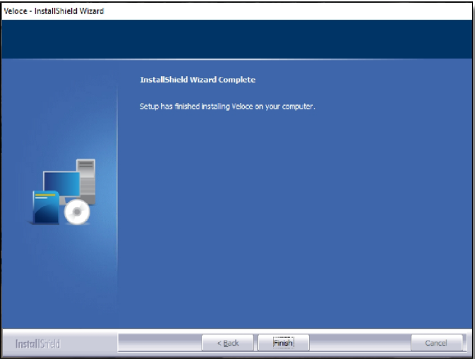 Veloce Back-Office est maintenant installé. Avant de pouvoir utiliser Veloce, le dossier Veloce doit être partagé, les icônes doivent être créées et la licence Veloce doit être activée.