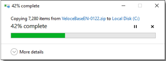 Ouvrez l'Explorateur de fichiers sur le lecteur C:. Le dossier Veloce a été et contient tous les fichiers extraites des archives.