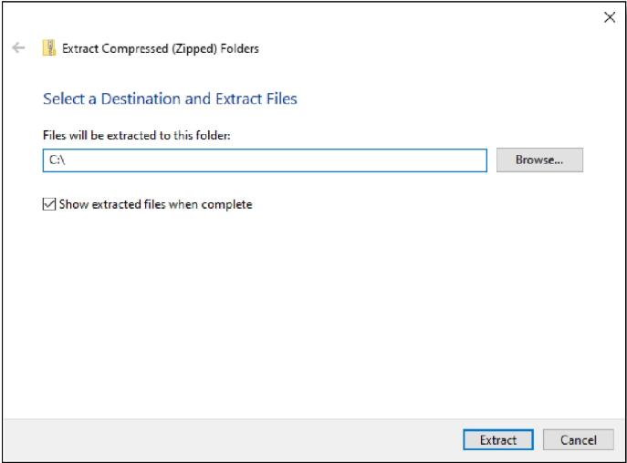 Lorsque l'on vous demande la destination des fichiers extraits, sélectionnez la racine du lecteur C:\ le bet ouctolinquExtraire. ez sur