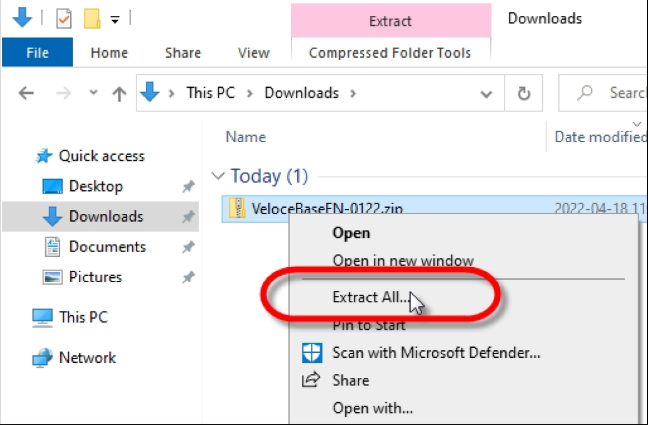 Cliquez avec le bouton droit de la souris sur l'archive et sélectionnez l'option Extraire tout....