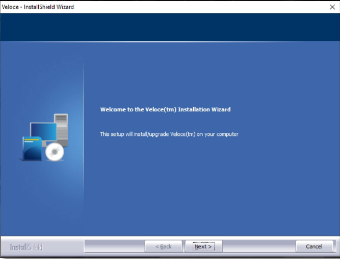 L'écran de bienvenue de Veloce Install/Upgrade s'affiche. Cliquez sur Suivant >.