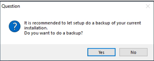Une invite à créer une sauvegarde de l'installation actuelle s'affiche.