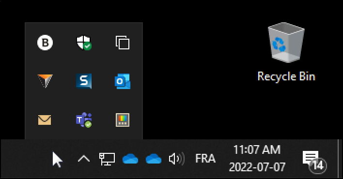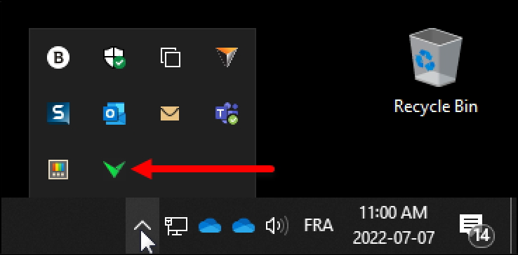 5. L'icône Veloce apparaît dans la zone de notification de Windows. L'icône peut clignoter entre le rouge et le vert pendant quelques secondes, mais finit par se fixer sur le vert.