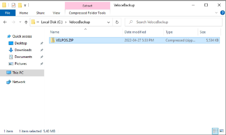6. À la fin du processus, vous aurez un fichier appelé VELPOS.ZIP dans le dossier sélectionné pour les sauvegardes.