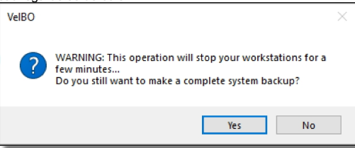 4. Un avertissement apparaît à l'écran, expliquant que votre système Veloce sera indisponible pendant que le processus de sauvegarde se déroule.