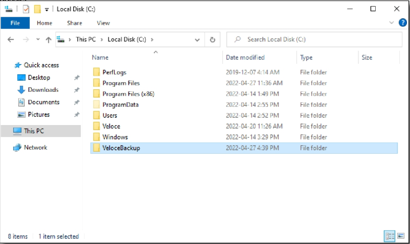 5. Dans le champ Chemin, saisissez le chemin complet du dossier de sauvegarde que vous avez créé précédemment, qui était C : \VeloceBackup dans notre exemple précédent.