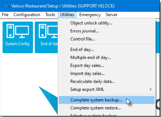 3. Cliquez sur le menu Utilitaires et sélectionnez l'option Sauvegarde complète du système....