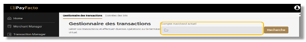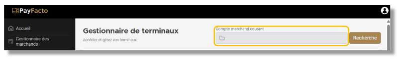 * Sélection d’un compte marchand