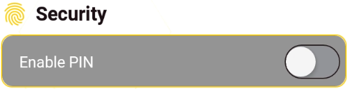 2. In the **Security** section, toggle the **Enable PIN** button to **Off**.
