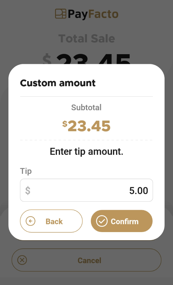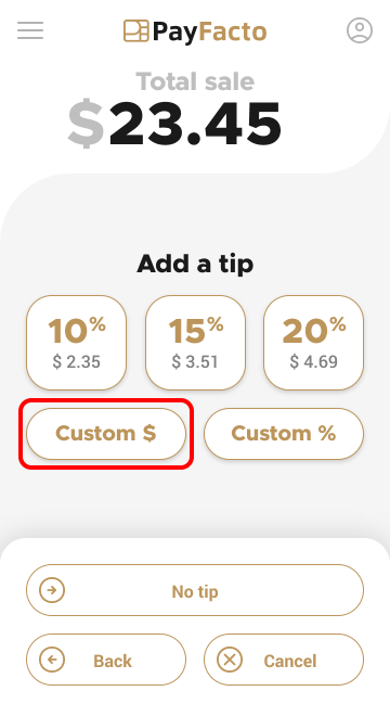 Custom tip amount