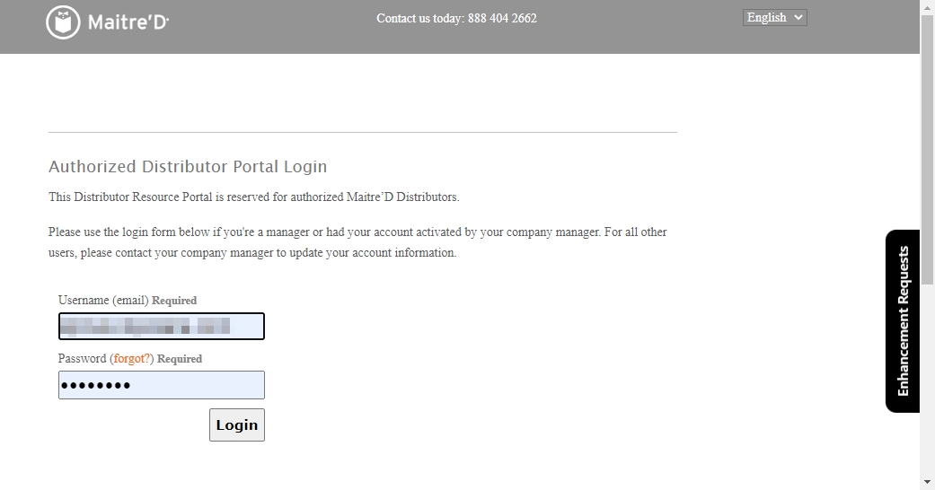 Logon to the Maitre'D Distributor Portal: