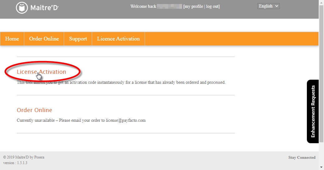 The first step to add new functionalities to your Maitre'D license is to contact your PayFacto representative to purchase the options you need. Once the purchase and invoicing process has been completed, you will be able to start the activation process.