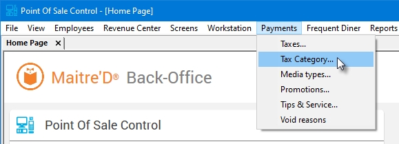 IMPORTANT! Every tax that will be created needs to belong to a Tax Category. Therefore, at least one Tax Category must exist in the Maitre'D Database.