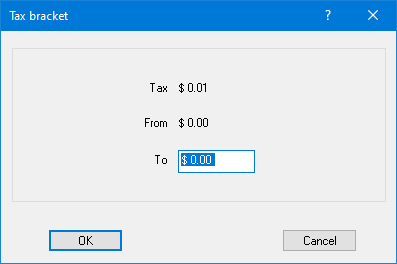 Click the Tax Bracket... button to access the tax table and modify each entry in the table. You will need the tax table provided by your local tax authorities for this task.