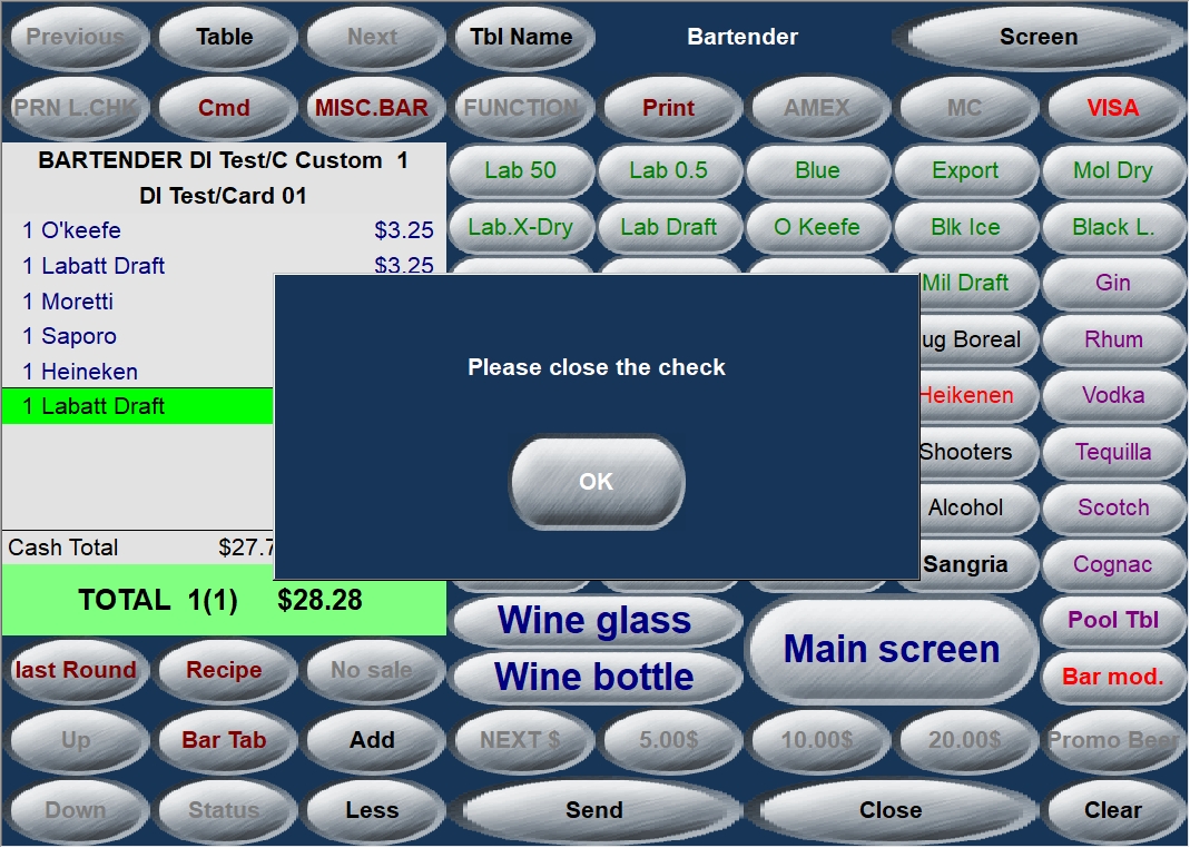 At this point, if the customer wishes to stay and continue ordering items, a brand new bar tab will need to be started.