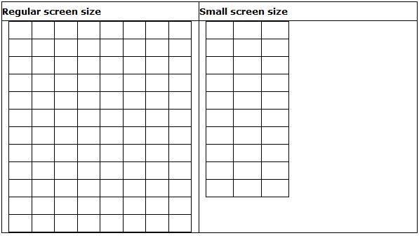 We use the notion of grid to partition areas; a regular device uses a grid of 8x12 cells, while a small device will use a grid of 3x10 or 3x9 cells (need to be determined at usage). Area size will snap to these grids. Scrolling uses page-flipping notion only. Scrolling supports bi-directional flipping, or unidirectional flipping with rollover. The grid is just a general button layout helper. Buttons are allowed to not snap to this grid.
