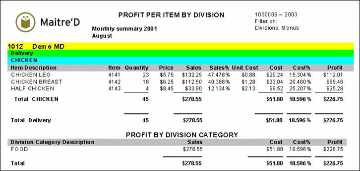 The following is a sample of the profit per item by division report: