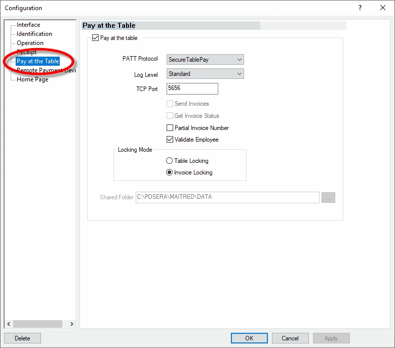 Select the invoice locking option to lock only the check being accessed, without locking the entire table. This allows other checks on a given table to be closed simultaneously with other payment terminals or from POS workstations.