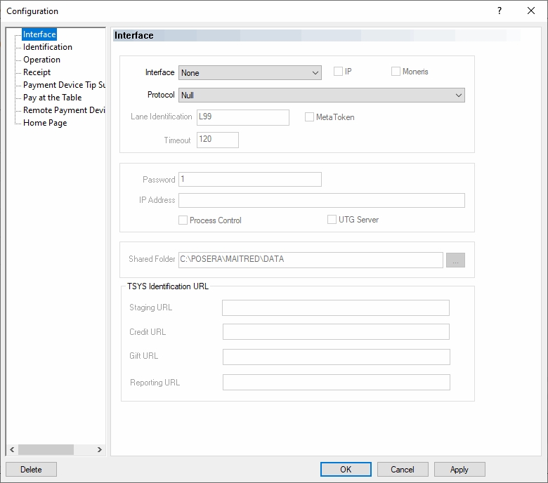 The settings from the Interface, Identification, Operation, Receipt, Payment Device Tip Suggestion, Remote Payment Device and Home Page branches don't have any effect on the operation of SecureTable. Please make sure not to change or remove any settings found in these pages, as these could affect the operation of tethered payment terminals.