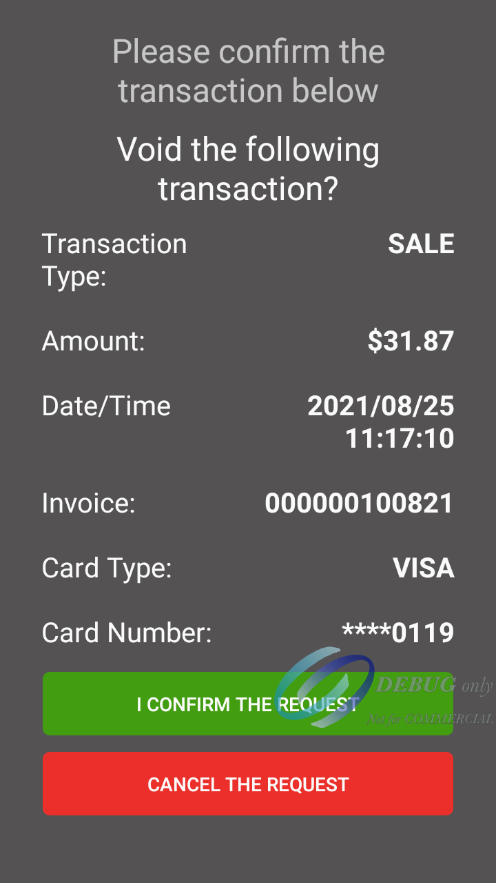 The payment application will display the transaction details. Verify that this is indeed the transaction you wish to void, then