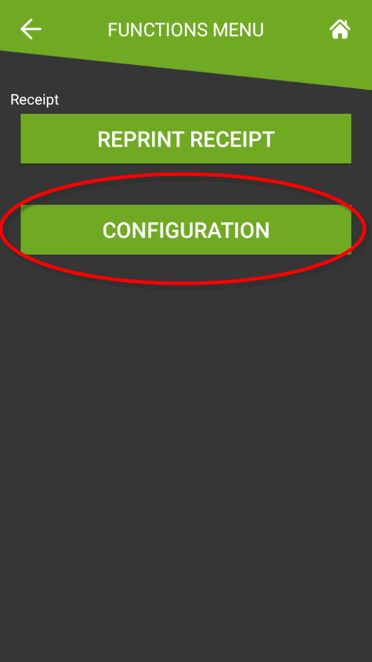 2. The FUNCTIONS menu will be displayed. Touch the CONFIGURATION button.