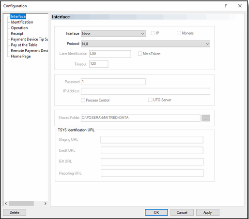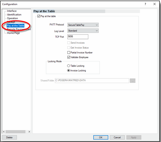 The settings from the Interface, Identification, Operation, Receipt, Payment Device Tip Suggestion, Remote Payment Device and Home Page branches don't have any effect on the operation of SecureTable. Please make sure not to change or remove any settings found in these pages, as these could affect the operation of tethered payment terminals.