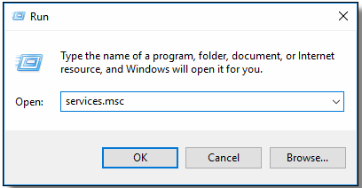 1. To verify that the service is started properly, right-click the Windows start button and select the Run… option. You can also press the Windows key + R on your keyboard. In the Open: box, type services.msc and click OK.