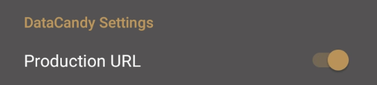 Production URL: Touch this toggle switch to On (to the right) to enable the terminal to communicate with the DataCandy server. When toggled to Off (to the left), the terminal cannot communicate with the DataCandy server.