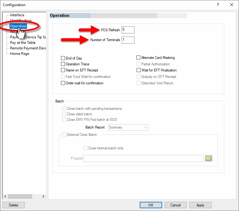 Electronic Funds Transfer (EFT) Interface setup