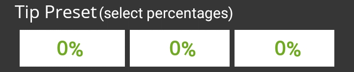 Configure preset tip percentages that the customer will see when prompted for tip. Up to 3 presets can be configured. If you do not wish to use all of them, presets that are set to 0% will not be displayed to the customer.
