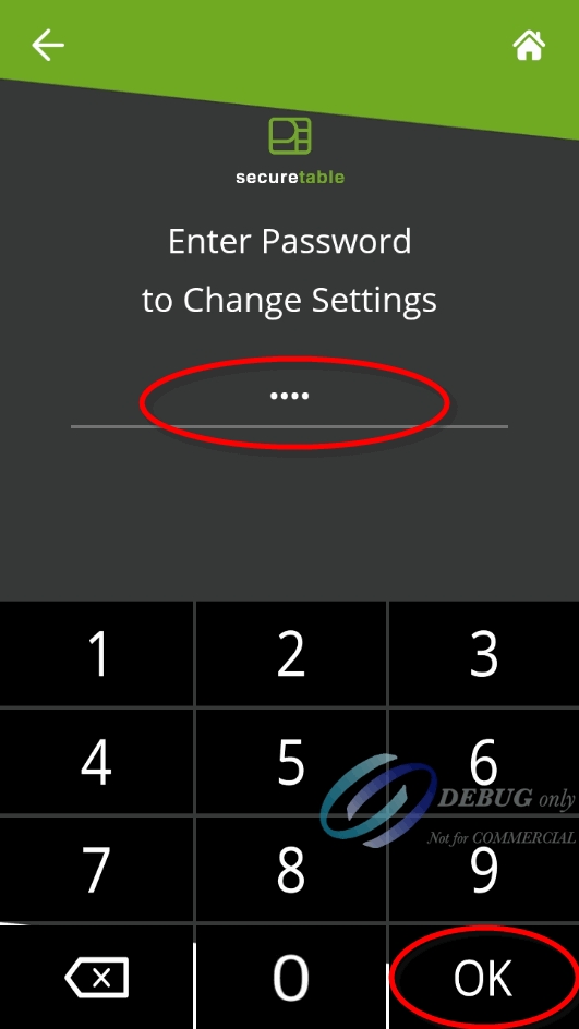 3. You will be prompted to enter a password before you can access settings. Enter the password and press the OK key.