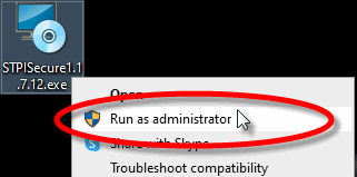 1. Locate the STPISecureX.X.X.X.exe file, then right-click the file and select Run as administrator.