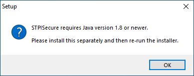 STPISecure requires Java version 1.8 or newer.