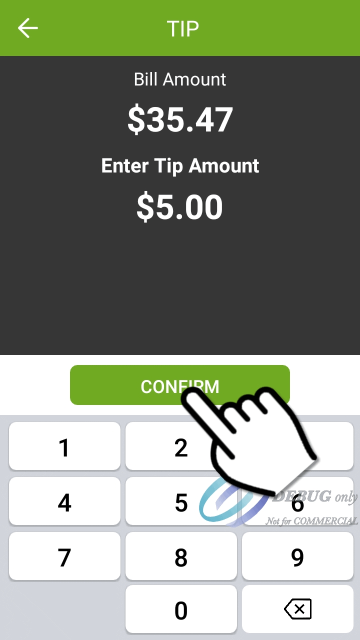 Add tip Confirmation screen