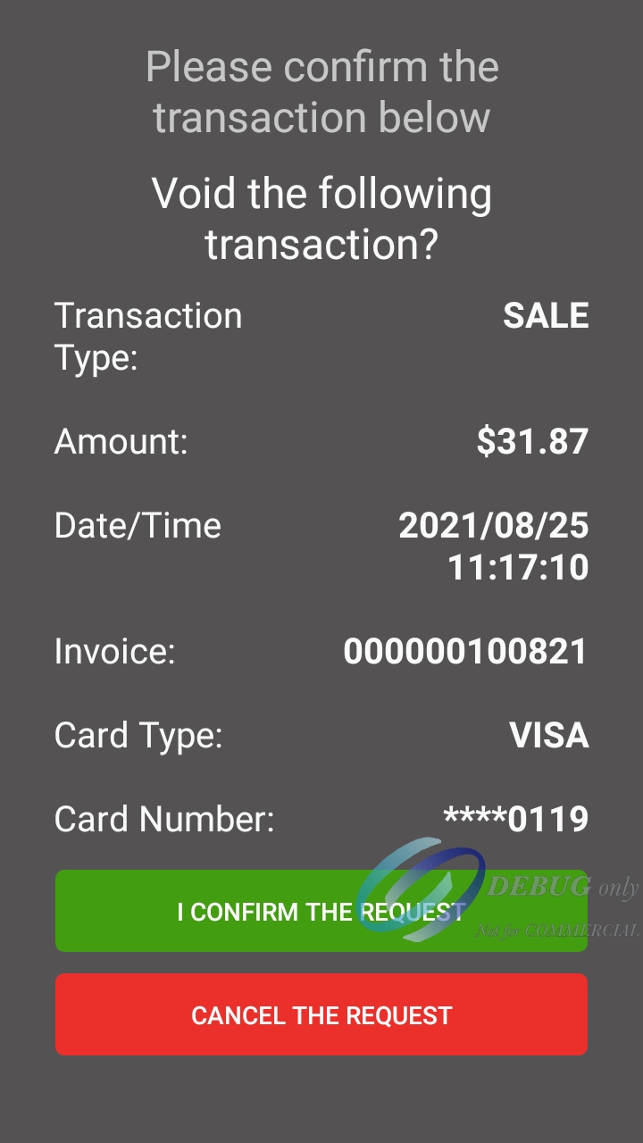 1. The payment application will display the transaction details. Verify that this is indeed the transaction you wish to void, then