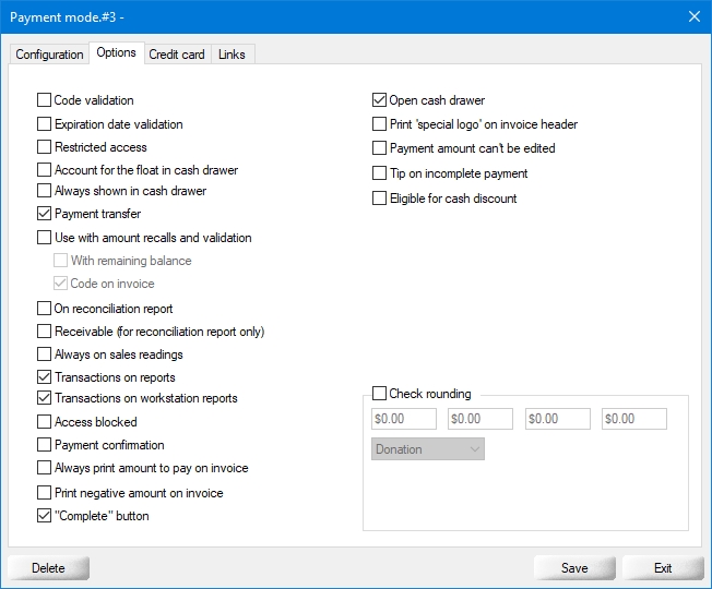 Click the Save button to save you settings and return to the payment modes list. The newly created payment mode will appear in the list.