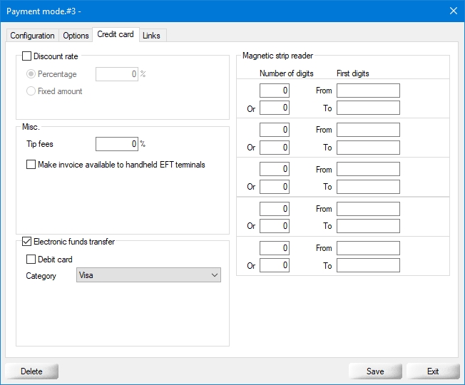 IMPORTANT! Before creating payment modes for the various card brands accepted by the merchant, the generic Credit/Debit payment mode must be created. Please see Generic Credit/Debit Payment Mode to learn how to configure it.