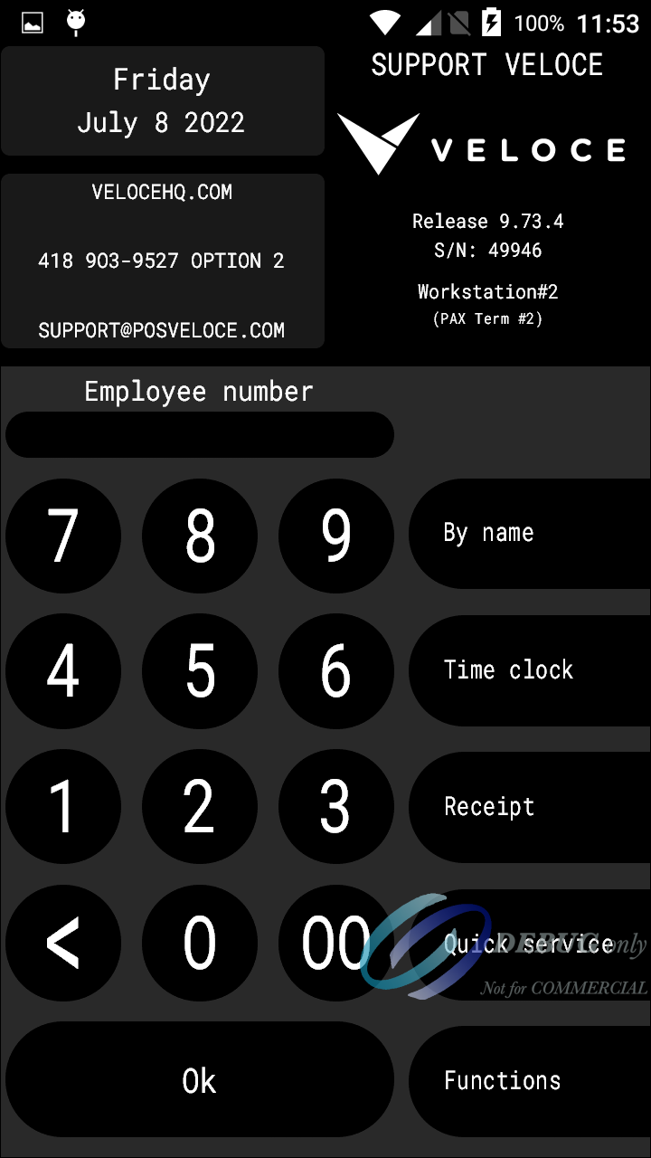 The Veloce POS application is now ready to be used. Use it just like a regular POS workstation to order items, print checks and process payments.