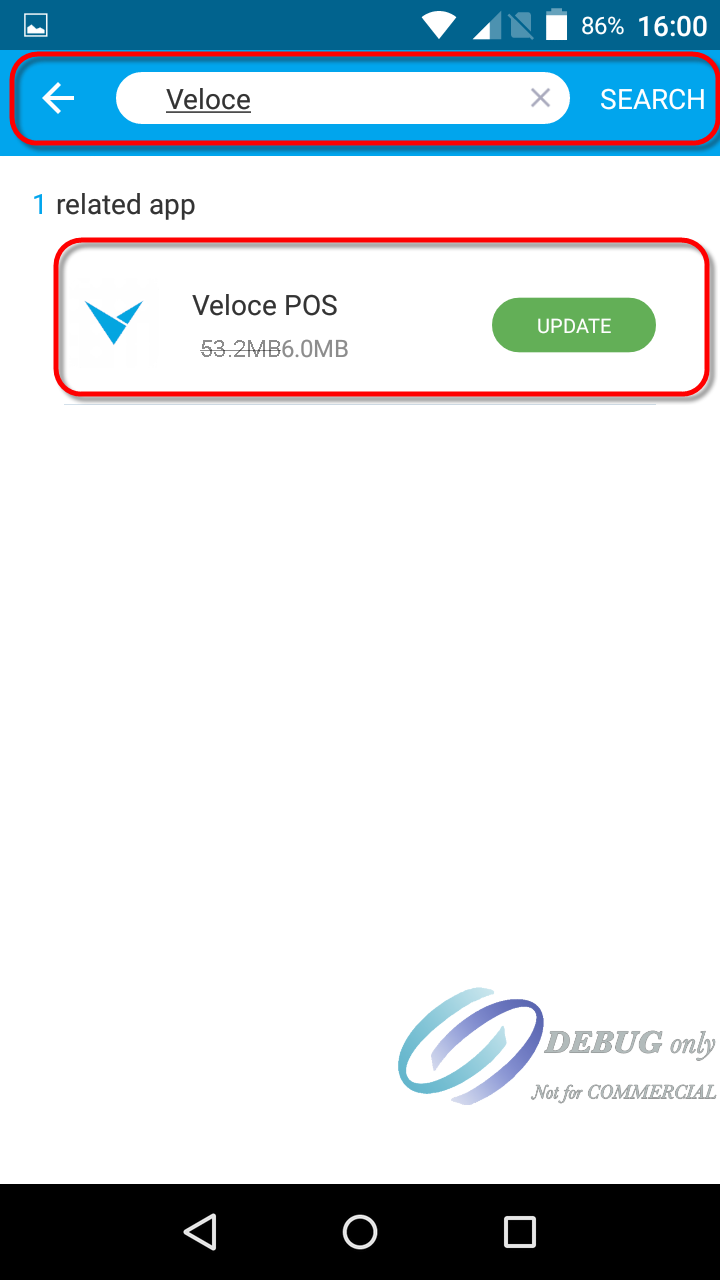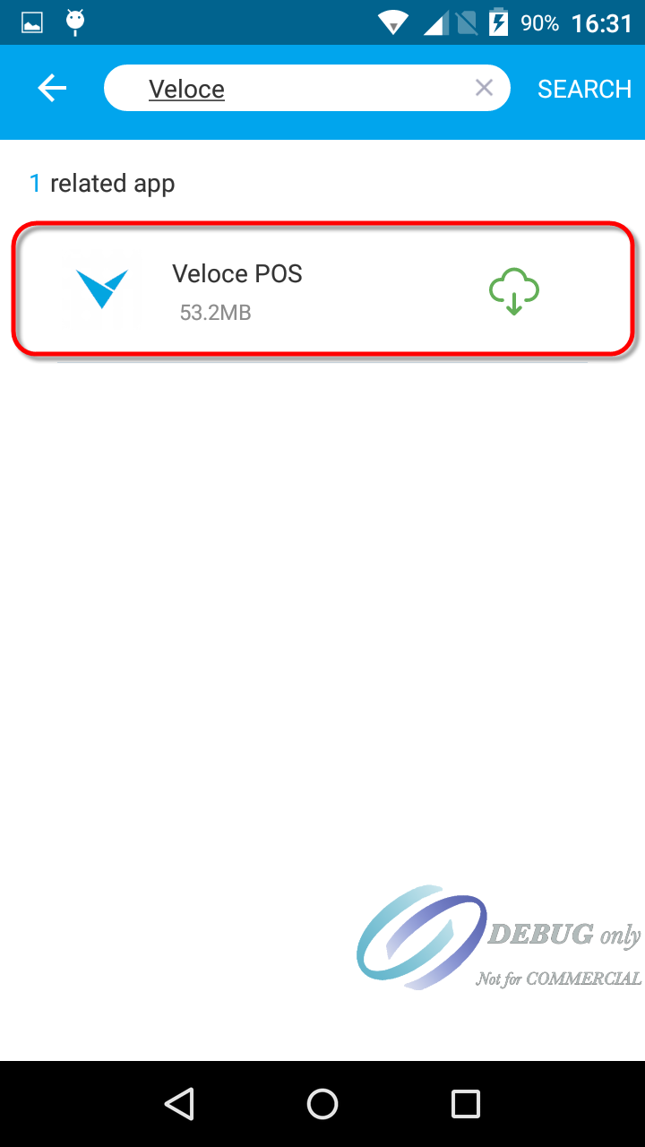 Select the Veloce POS application and touch the Download icon. If the application is already installed,you will see an UPDATE button instead.