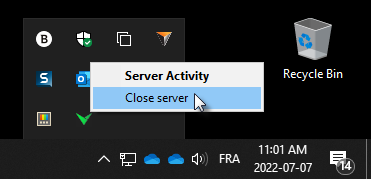 Windows notification area - Server started