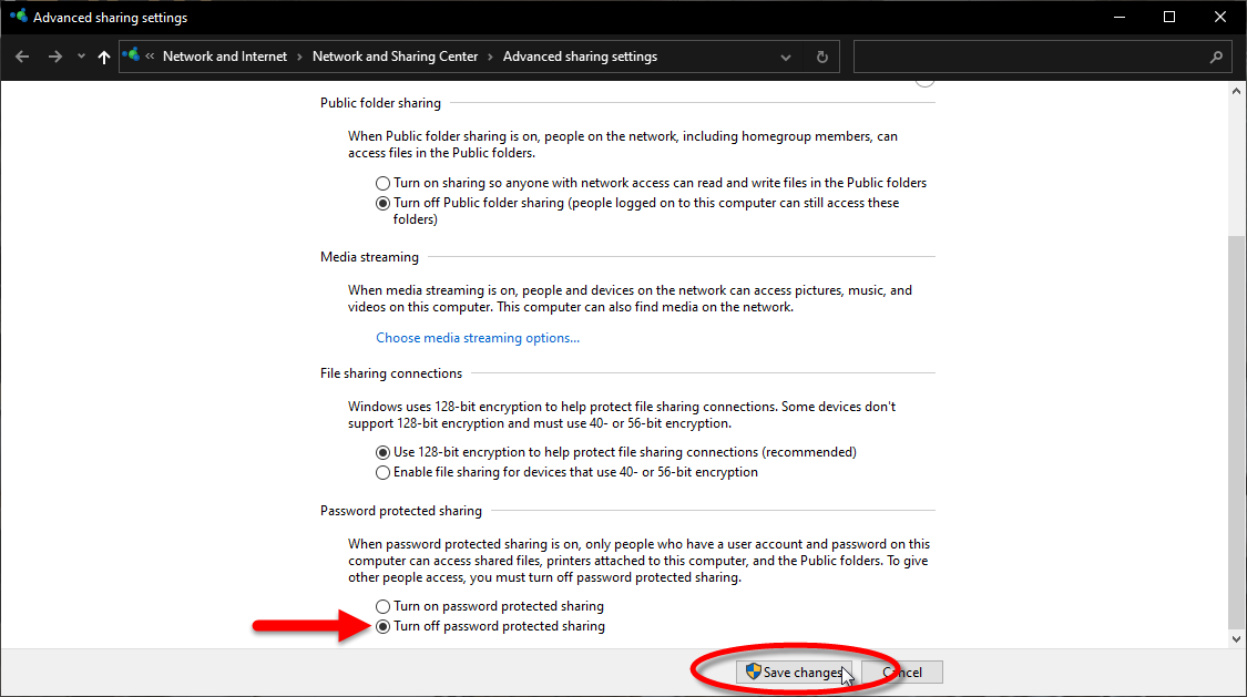 Scroll down to the Password Protected Sharing section and select Turn off password protected sharing.