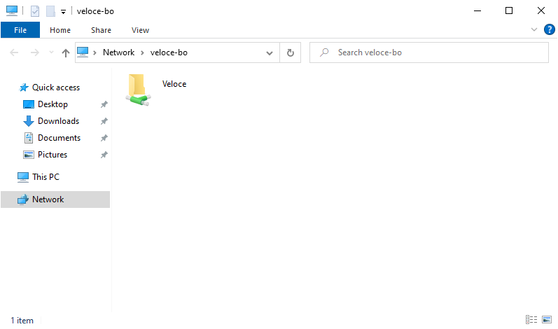 b. If the Veloce Back-Office is not yet installed or the Veloce folder is not shared properly, you will see an empty folder on the PC named VELOCE-BO.