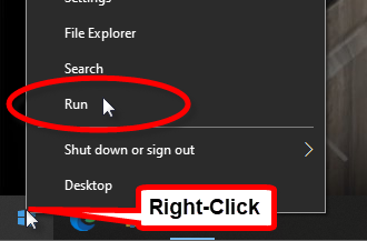 From any PC or POS on the Veloce network, right-click the Windows Start button and select Run...