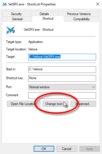 Replace the Veloce Server shortcut icon