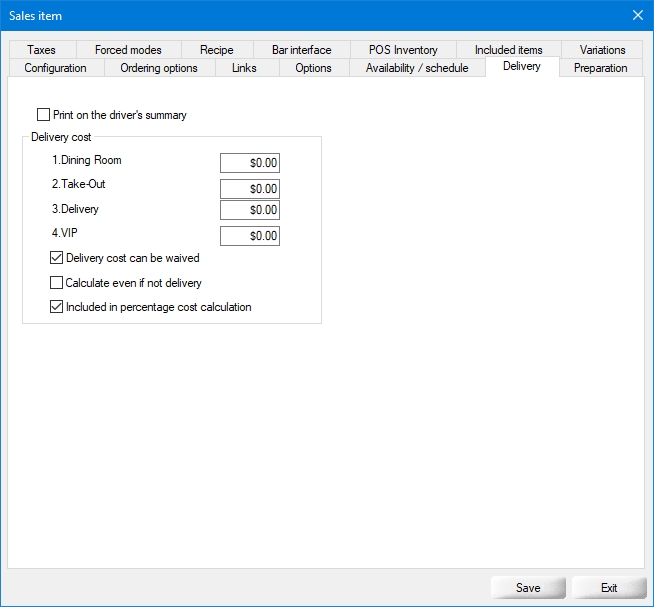 Enable this option to print the delivery cost information on the delivery driver's sumary.