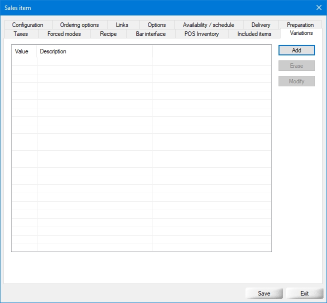 Please go through each of the following topics to learn more about all the options contained in each tab of the sales items setup: