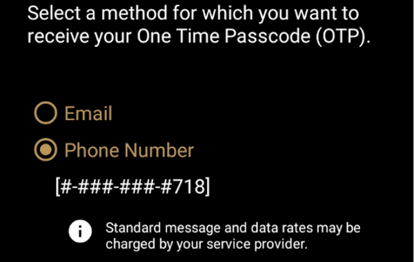 IMPORTANT! To receive the OTP on your phone, your registered phone number must be able to receive text messages (SMS). If you cannot receive text messages, select the email option to get the OTP.